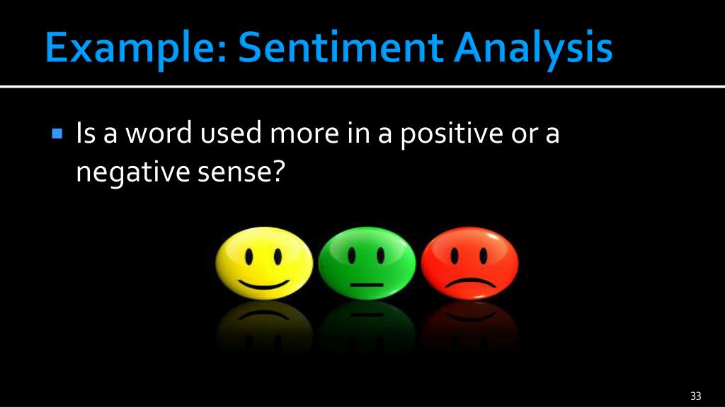 Example: Sentiment Analysis • Is a word used more in a positive or a negative sense?