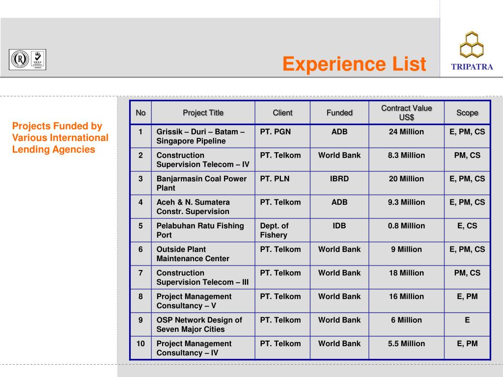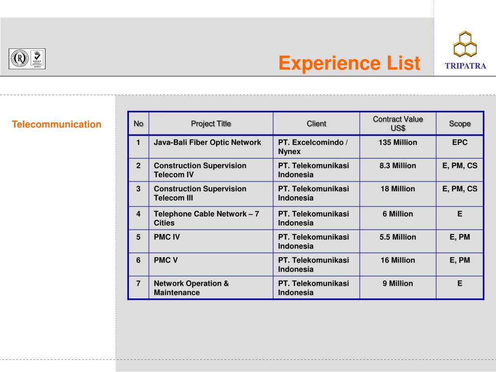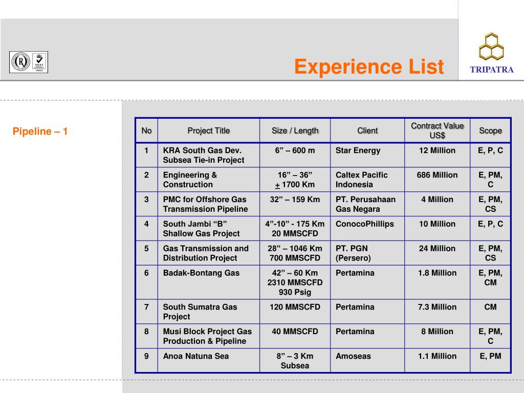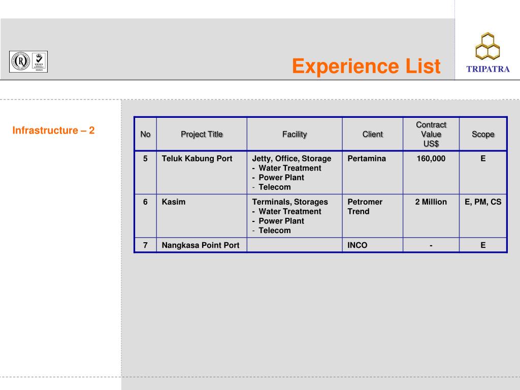 Tripatra Group of Companies PT. TRIPATRA ENGINEERING Incorporated in 1973 to pioneer the development of engineering, procurement, construction supervision and project management consulting services to the Oil & Gas Industry in Indonesia. PT. TRIPATRA ENGINEERS AND CONSTRUCTORS Incorporated in 1988 in response to the rising demand from project owners for an Indonesian company to pioneer the challenge of EPC turnkey projects including operations and maintenance.