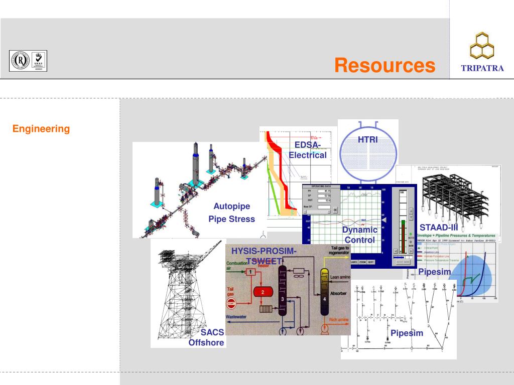 Resources Engineering HTRI EDSA-Electrical Autopipe Pipe Stress STAAD-III Dynamic Control HYSIS-PROSIM-TSWEET Pipesim SACS Offshore Pipesim