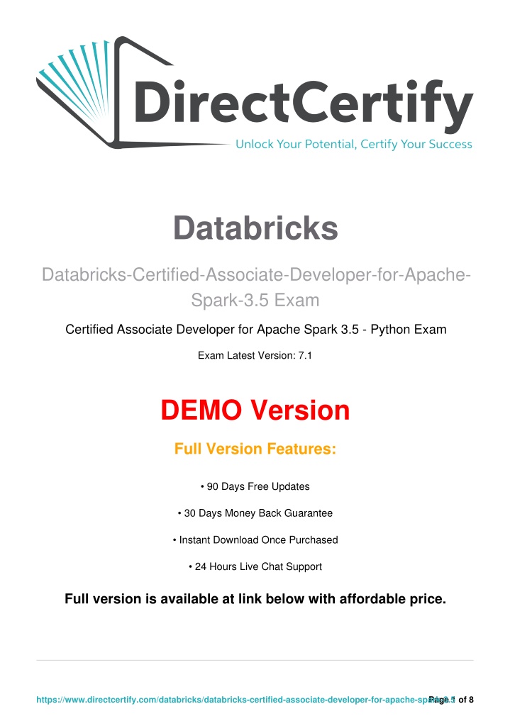 Full version is available at link below with affordable price. https://www.directcertify.com/databricks/databricks-certified-associate-developer-fo r-apache-spark-3.5 30% Discount Coupon Code: LimitedTime2025 https://www.directcertify.com/databricks/databricks-certified-associate-developer-for-apache-spark-3.5 Page 8 of 8