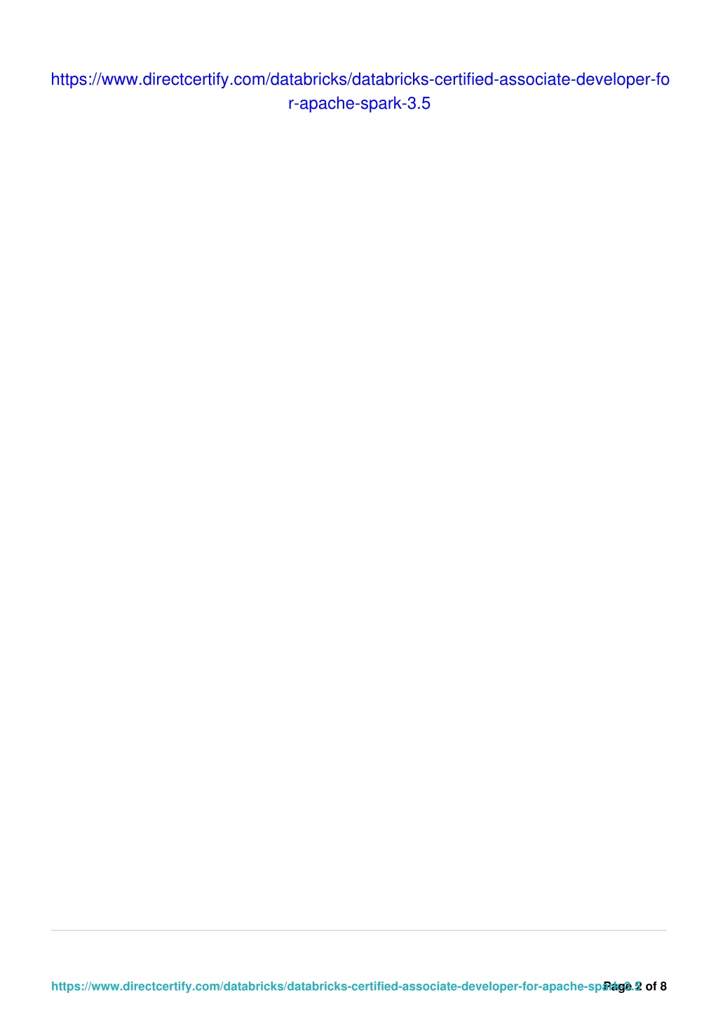 https://www.directcertify.com/databricks/databricks-certified-associate-developer-fohttps://www.directcertify.com/databricks/databricks-certified-associate-developer-fo r-apache-spark-3.5 https://www.directcertify.com/databricks/databricks-certified-associate-developer-for-apache-spark-3.5 Page 2 of 8