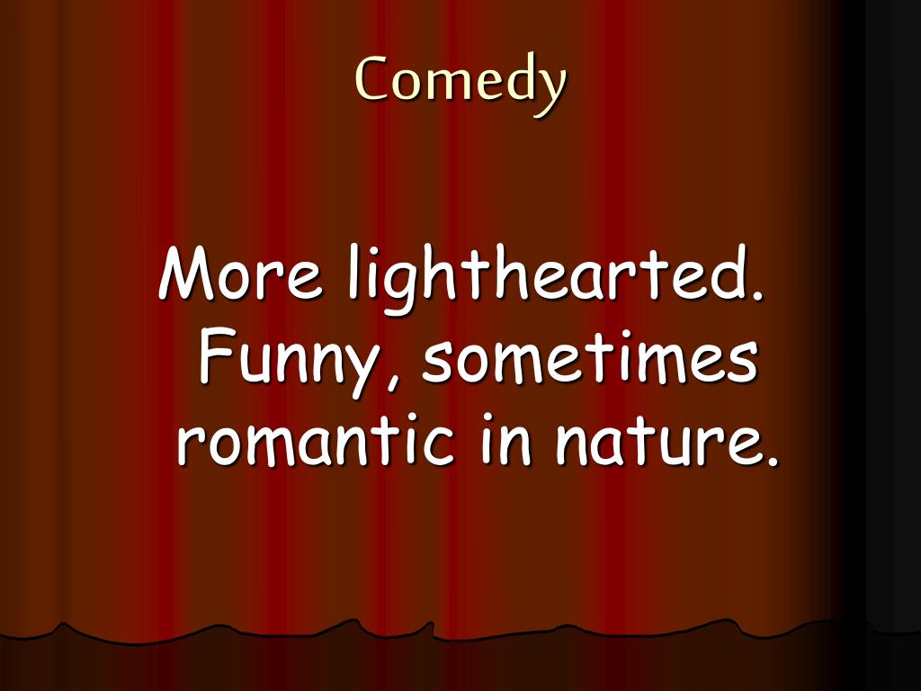 Comedy More lighthearted. Funny, sometimes romantic in nature.