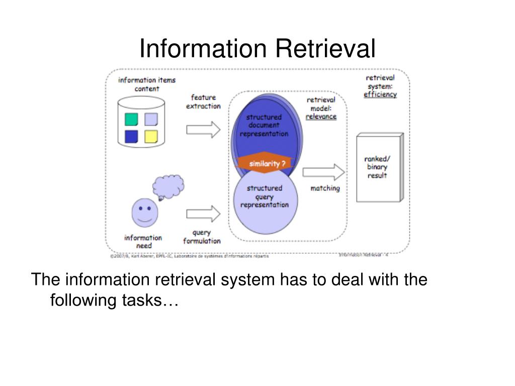 Information Retrieval The information retrieval system has to deal with the following tasks…