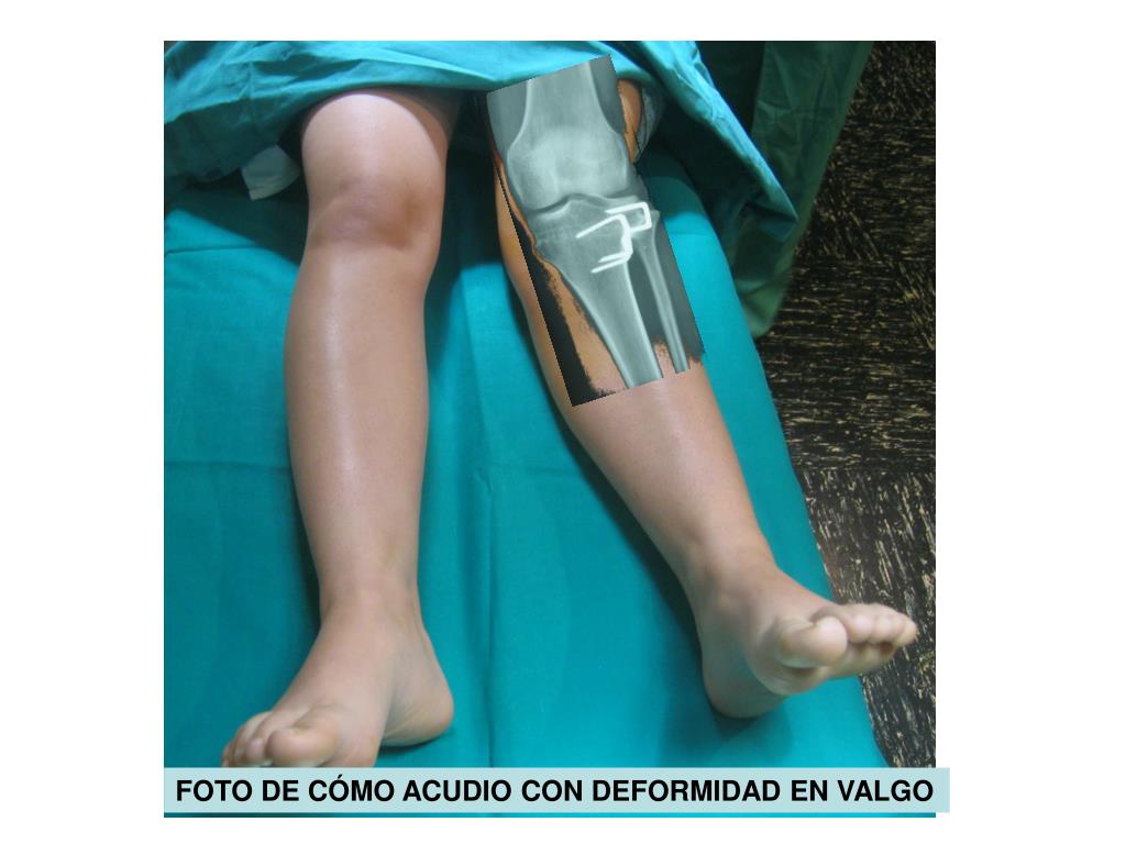 CASO CLINICO • CHICA DE 20 AÑOS • HACE 4 AÑOS FUE INTERVENIDA EN OTRO CENTRO MEDIANTE UNA OSTEOTOMIA DE TIBIA VALGUIZANTE TIPO COVENTRY POR PRESENTAR UN GENU VARO. • SE REALIZO UNA HIPERCORRECCION CON 13º DE VALGO. • LA PACIENTE PRESENTA UNA INESTABILIDAD MUY IMPORTANTE DE LA RODILLA, COJERA Y DOLOR POR SOBREPRESION EN COMPARTIMENTO EXTERNO Y DISTENSION EN EL INTERNO. ADEMAS PRESENTA DEFORMIDAD ANTIESTETICA.