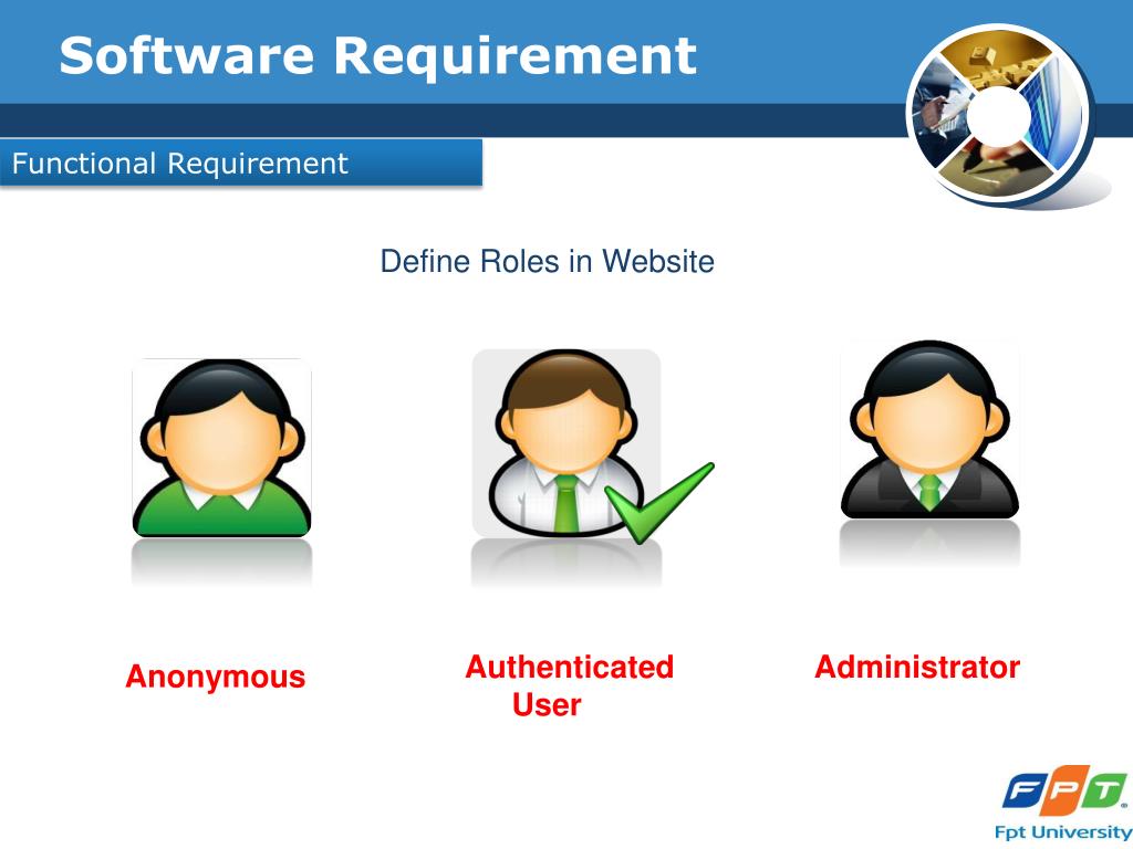 Software Requirement Functional Requirement Define Roles in Website Authenticated Administrator Anonymous User