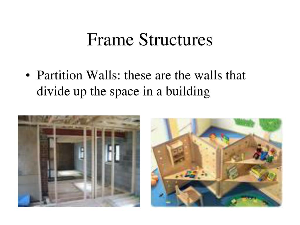 Frame Structures • Partition Walls: these are the walls that divide up the space in a building