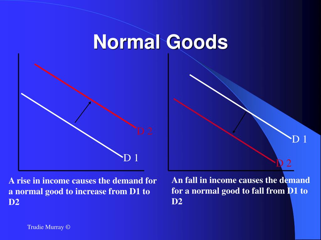 Normal Goods D 2 D 1 D 1 D 2 An fall in income causes the demand for a normal good to fall from D1 to D2 A rise in income causes the demand for a normal good to increase from D1 to D2