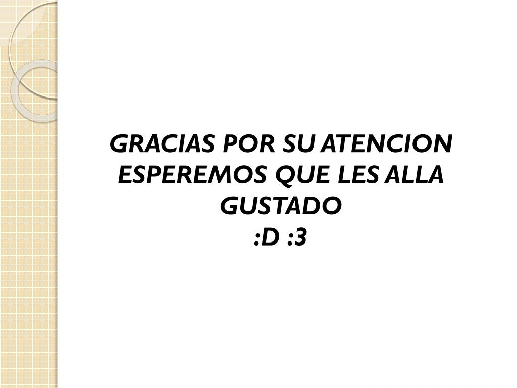 GRACIAS POR SU ATENCION ESPEREMOS QUE LES ALLA GUSTADO :D :3