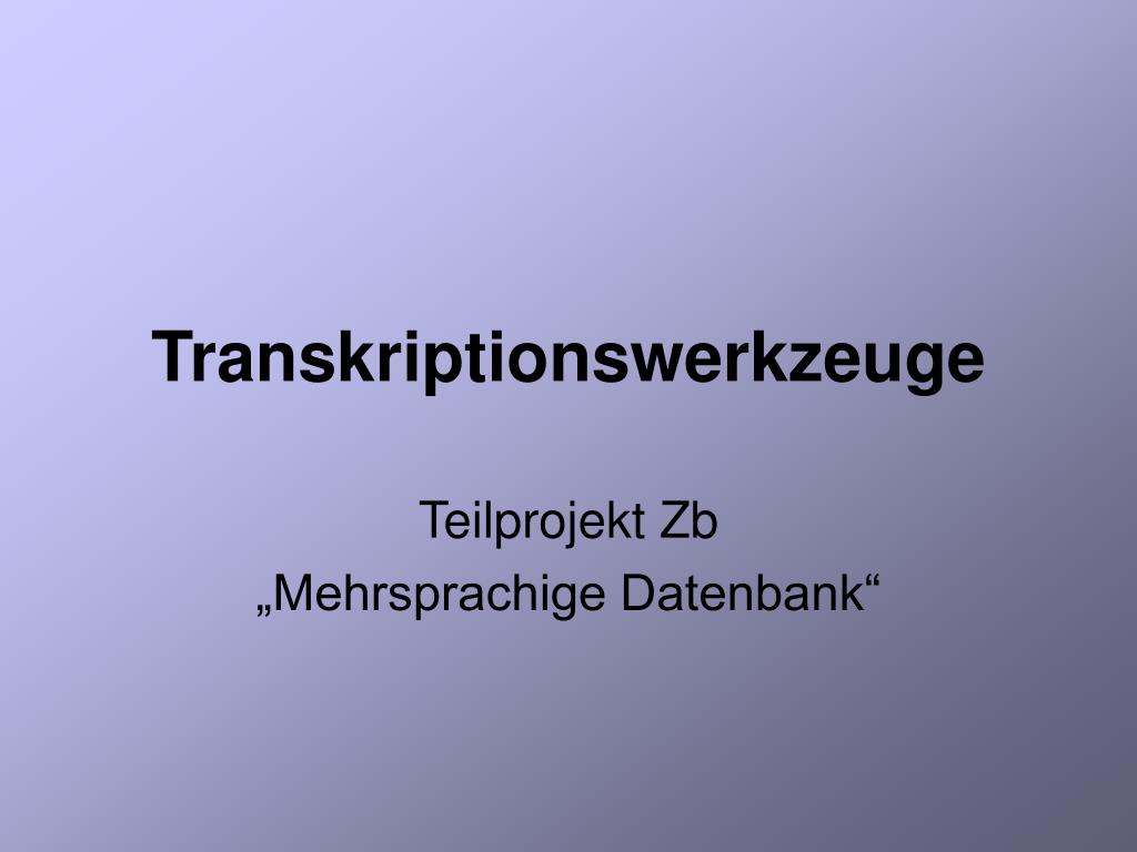Transkriptionswerkzeuge Teilprojekt Zb „Mehrsprachige Datenbank“
