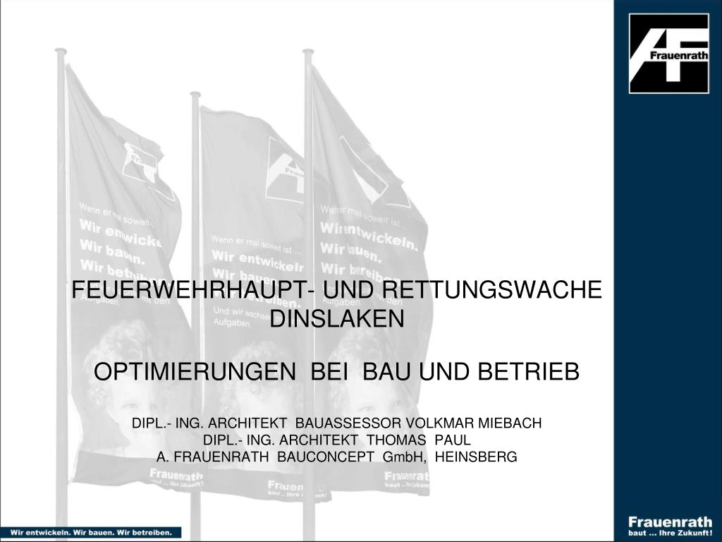 FEUERWEHRHAUPT- UND RETTUNGSWACHE DINSLAKENOPTIMIERUNGEN BEI BAU UND BETRIEBDIPL.- ING. ARCHITEKT BAUASSESSOR VOLKMAR MIEBACHDIPL.- ING. ARCHITEKT THOMAS PAULA. FRAUENRATH BAUCONCEPT GmbH, HEINSBERG