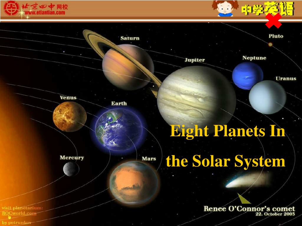 Eight Planets In the Solar System: Mercury 水星 Venus 金星 Earth 地球 Mars 火星 Jupiter 木星 Saturn 土星 Uranus 天王星 Neptune 海王星 My Very Easy Method: Just Set Up Nine Planets.