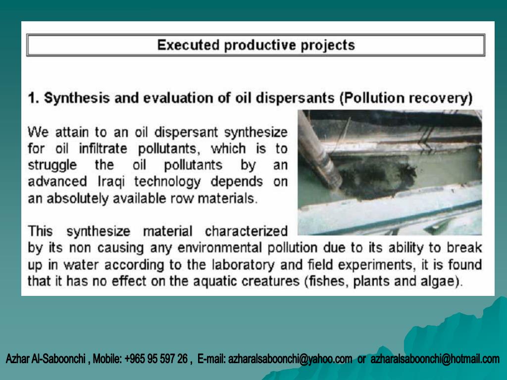 Azhar Al-Saboonchi , Mobile: +965 95 597 26 , E-mail: azharalsaboonchi@yahoo.com or azharalsaboonchi@hotmail.com