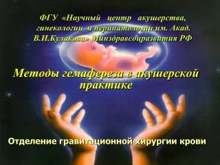 ФГУ «Научный центр акушерства, гинекологии и перинатологии им. Акад. В.И.Кулакова» Минздравсоцразвития РФ Методы гемафереза в акушерской практике Отделение гравитационной хирургии крови