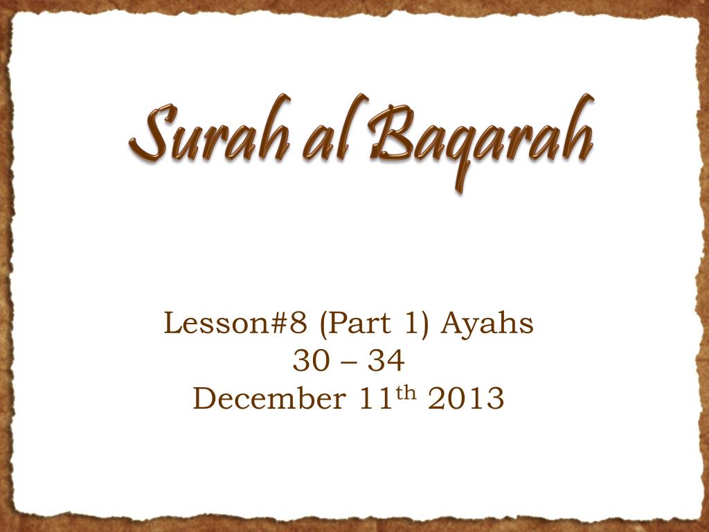 Surah al Baqarah Lesson#8 (Part 1) Ayahs 30 – 34 December 11th 2013