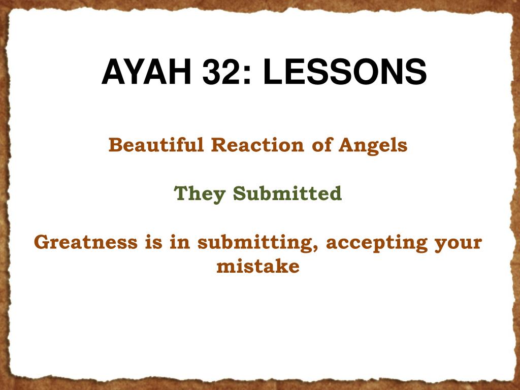 AYAH 32: LESSONS Beautiful Reaction of Angels They Submitted Greatness is in submitting, accepting your mistake