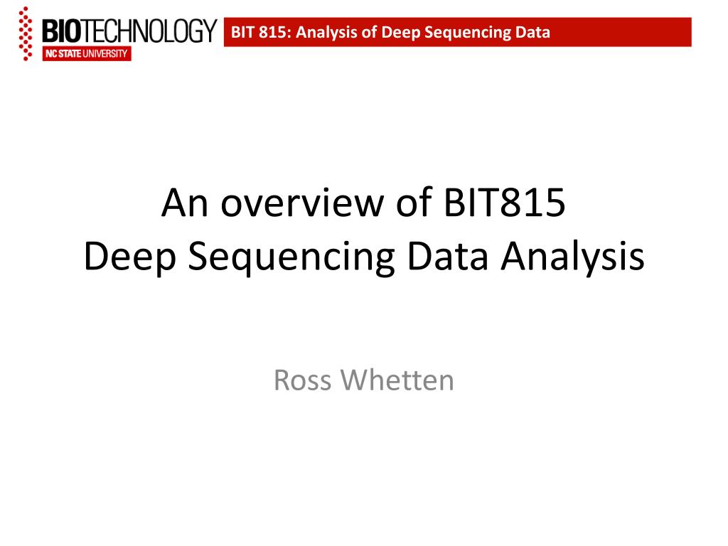 BIT 815: Analysis of Deep Sequencing Data An overview of BIT815Deep Sequencing Data Analysis Ross Whetten