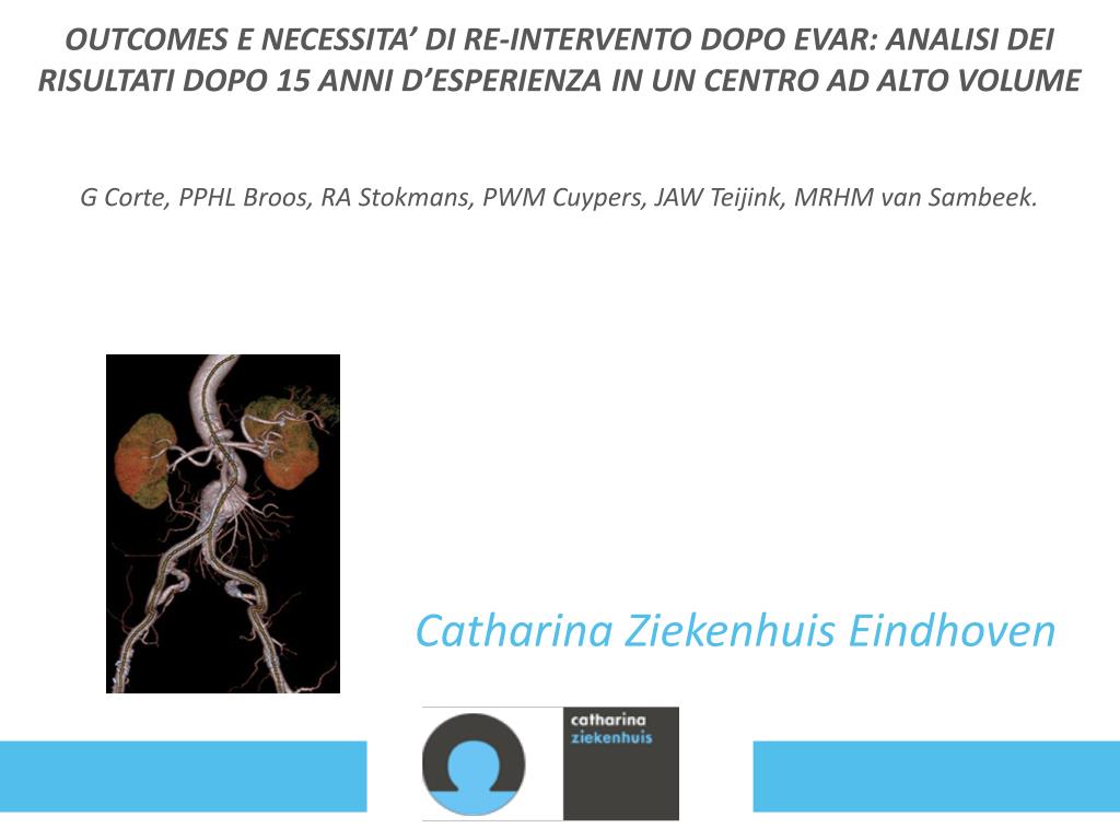 OUTCOMES E NECESSITA’ DI RE-INTERVENTO DOPO EVAR: ANALISI DEI RISULTATI DOPO 15 ANNI D’ESPERIENZA IN UN CENTRO AD ALTO VOLUME G Corte, PPHL Broos, RA Stokmans, PWM Cuypers, JAW Teijink, MRHM van Sambeek. Catharina Ziekenhuis Eindhoven