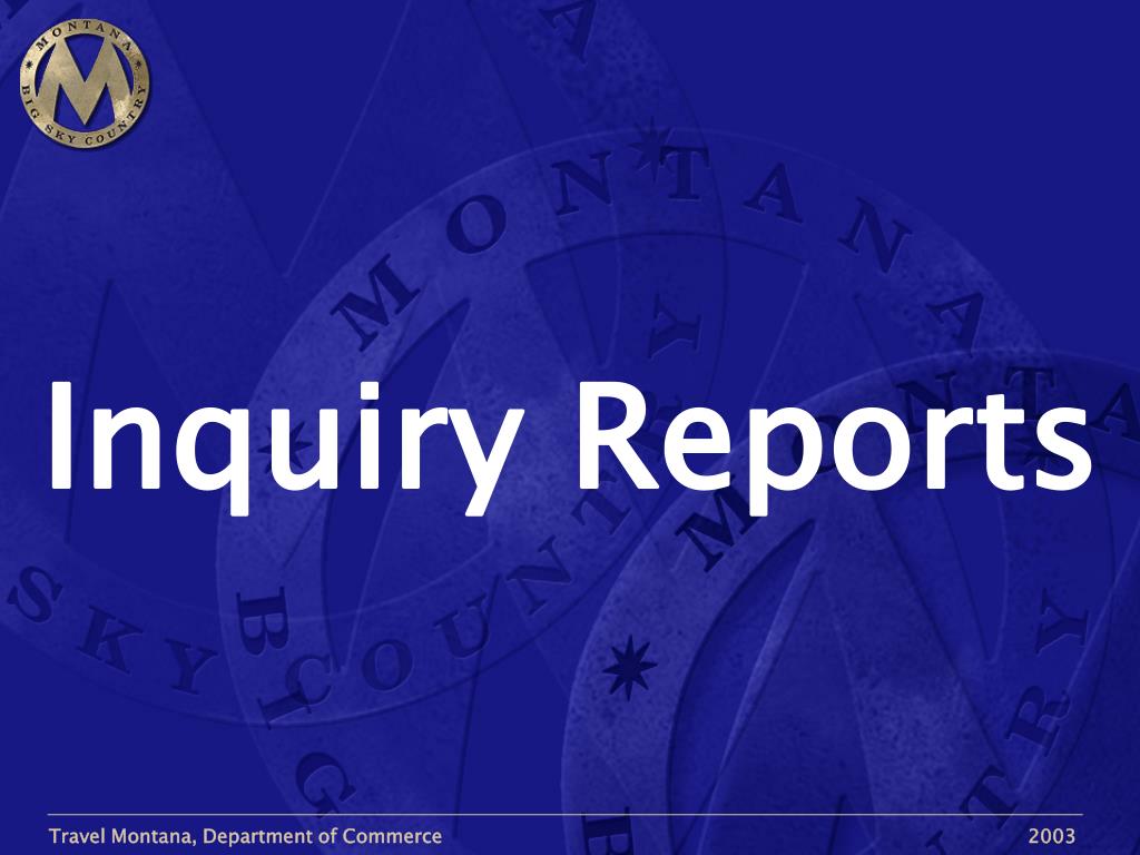 Inquiry Reports Travel Montana, Department of Commerce 2003
