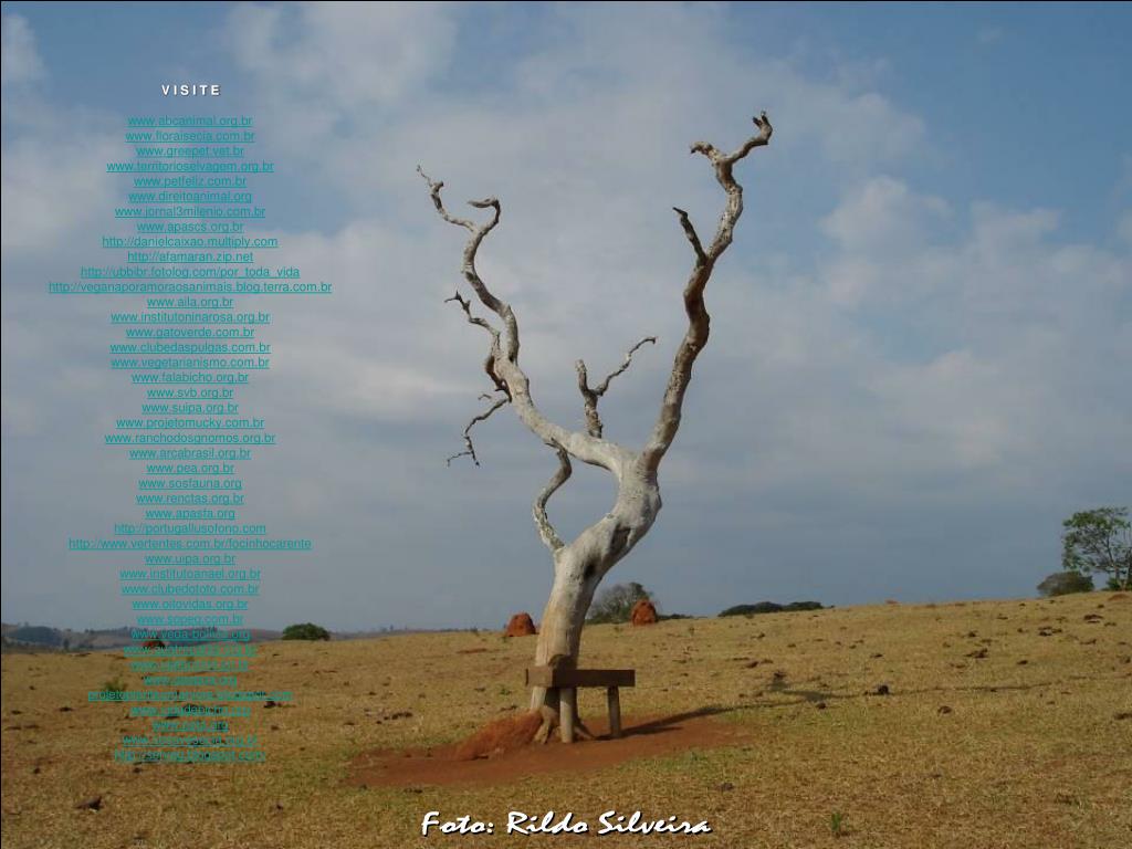 Foto: Rildo Silveira V I S I T E www.abcanimal.org.br www.floraisecia.com.br www.greepet.vet.br www.territorioselvagem.org.br www.petfeliz.com.br www.direitoanimal.org www.jornal3milenio.com.br www.apascs.org.br http://danielcaixao.multiply.com http://afamaran.zip.net http://ubbibr.fotolog.com/por_toda_vida http://veganaporamoraosanimais.blog.terra.com.br www.aila.org.br www.institutoninarosa.org.br www.gatoverde.com.br www.clubedaspulgas.com.br www.vegetarianismo.com.br www.falabicho.org.br www.svb.org.br www.suipa.org.br www.projetomucky.com.br www.ranchodosgnomos.org.br www.arcabrasil.org.br www.pea.org.br www.sosfauna.org www.renctas.org.br www.apasfa.org http://portugallusofono.com http://www.vertentes.com.br/focinhocarente www.uipa.org.br www.institutoanael.org.br www.clubedototo.com.br www.oitovidas.org.br www.sopeq.com.br www.veda-bolivia.org www.quatropatas.org.br www.viafanzine.jor.br www.gaepoa.org projetoplanteumarvore.blogspot.com www.vidadebicho.org www.peta.org www.sosavesecia.org.br http://serveg.blogspot.com/