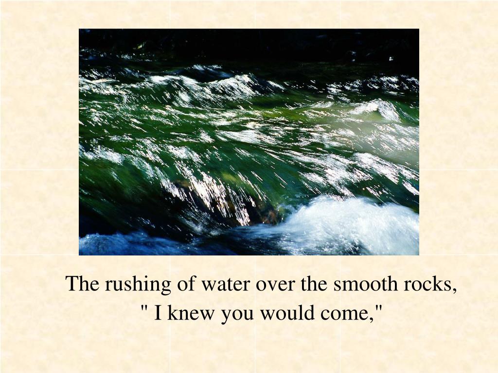 The rushing of water over the smooth rocks, " I knew you would come,"