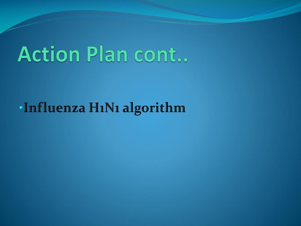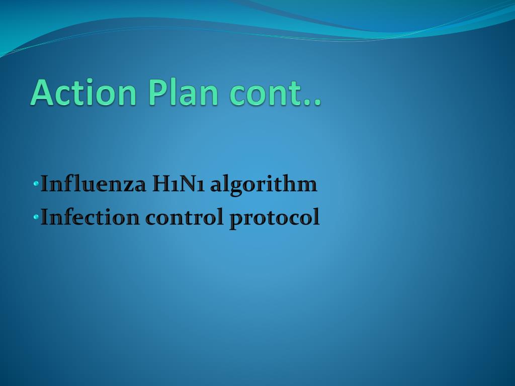 Action Plan cont.. Influenza H1N1 algorithm Infection control protocol