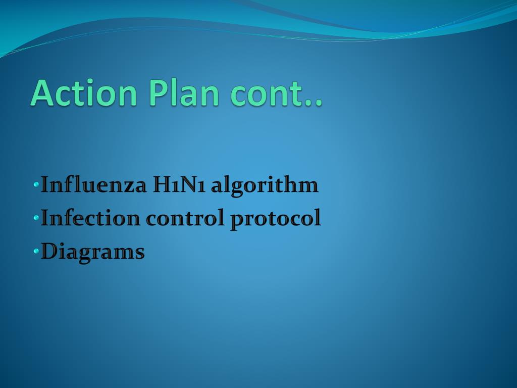 Action Plan cont.. Influenza H1N1 algorithm Infection control protocol Diagrams
