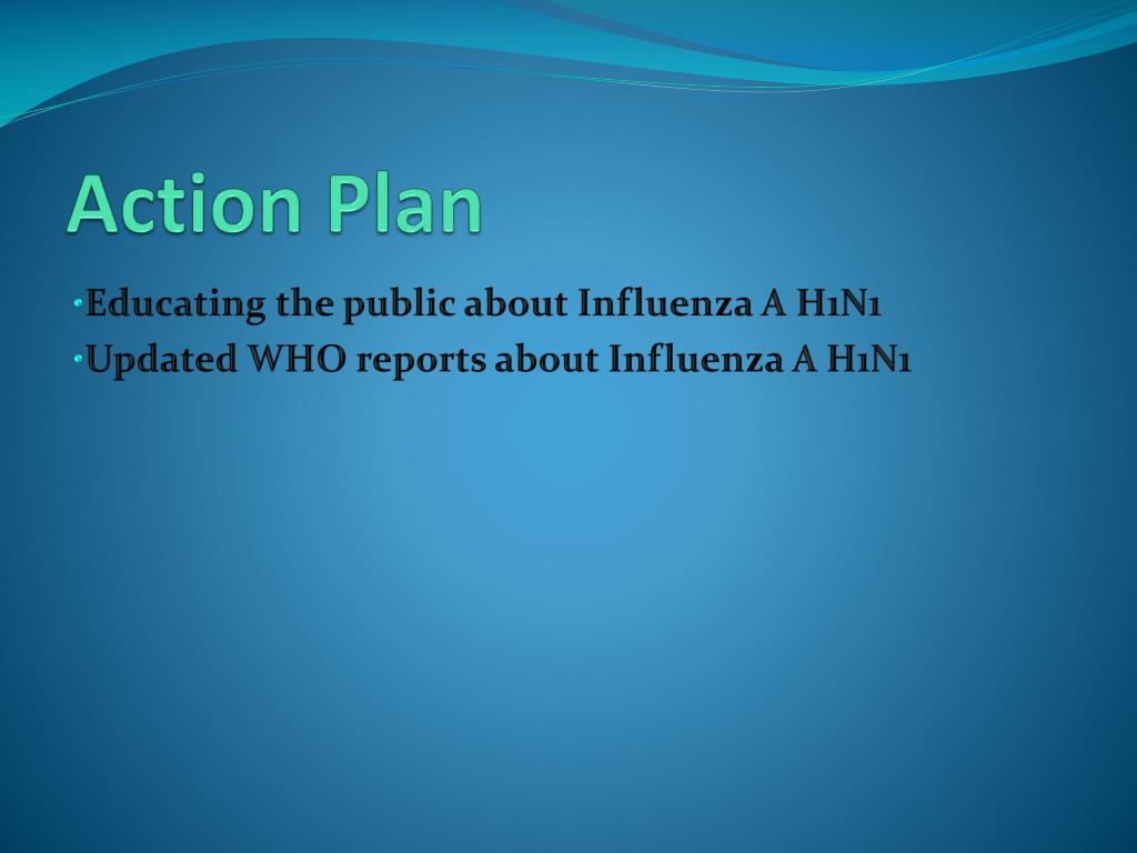 Action Plan Educating the public about Influenza A H1N1 Updated WHO reports about Influenza A H1N1