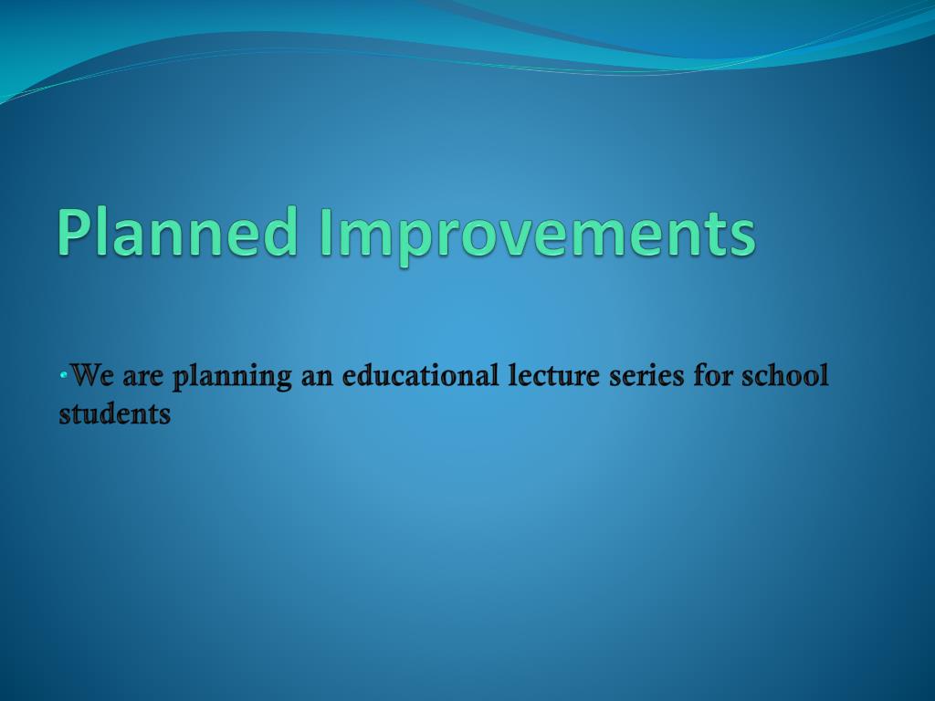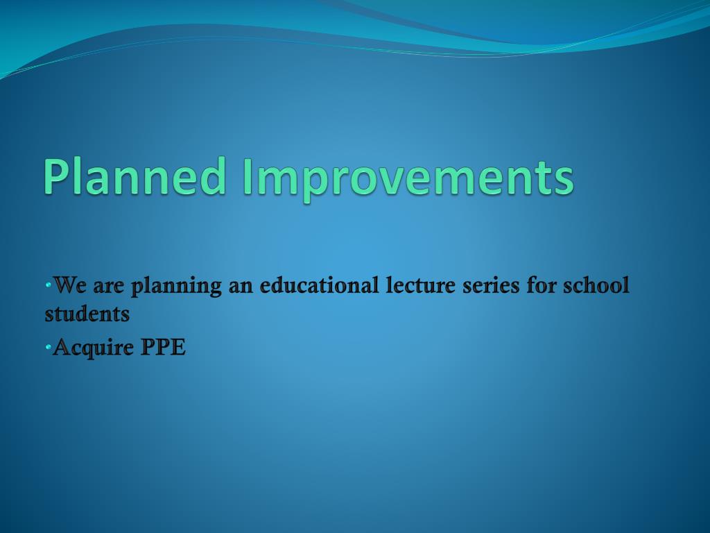 Planned Improvements We are planning an educational lecture series for school students Acquire PPE