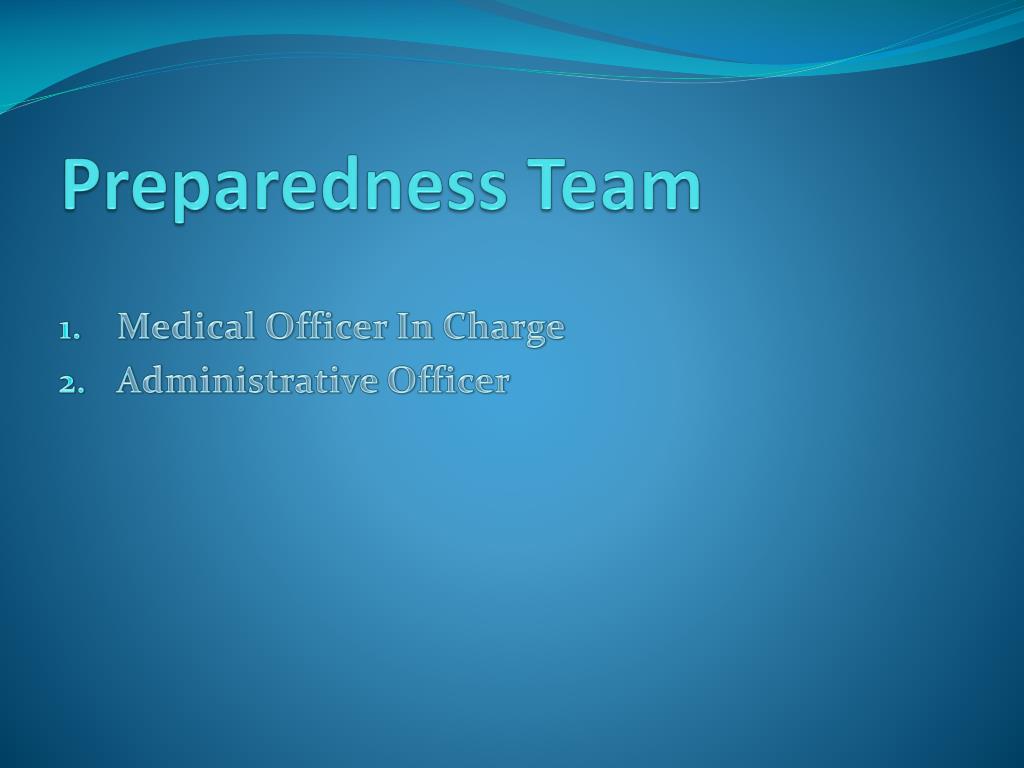 Preparedness Team Medical Officer In Charge Administrative Officer Head of Nursing