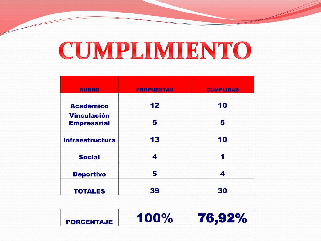 La Asociación 2013esta a puertas de terminar su periodo, de sus 39 propuestas hemos logrado cumplir 30, despidiéndose con una ponderación del 76,92% de Cumplimiento en obras ofrecidas. Cabe recalcar que algunas de las obras No cumplidas se debieron a PROHIBICIONES de la UCSG, apegándose al reglamento que no permite ningún evento Social dentro del recinto Universitario. Sin embargo podemos destacar obras EXTRAS que realizamos en nuestra gestión del 2013 que no se prometieron, pero vimos necesario y factible realizarlas!! GRACIAS FACULTAD ECONOMIA!!