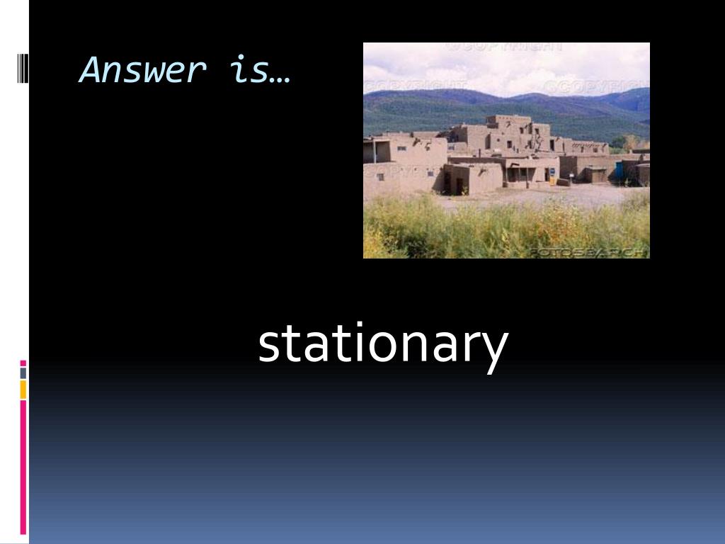 WORDO • The Kwakiutl, Pueblo, and sometimes the Iroquois were __________; they usually built their homes and stayed put.