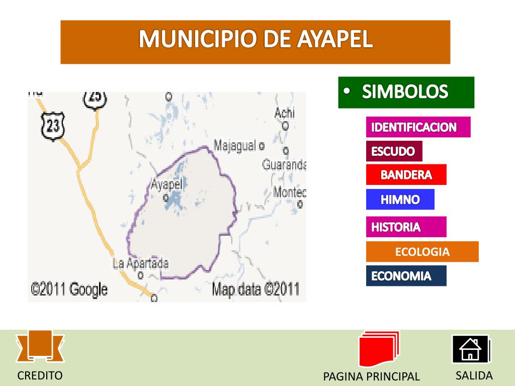 MUNICIPIO DE AYAPEL • SIMBOLOS IDENTIFICACION ESCUDO BANDERA HIMNO HISTORIA ECOLOGIA ECONOMIA CREDITO SALIDA PAGINA PRINCIPAL