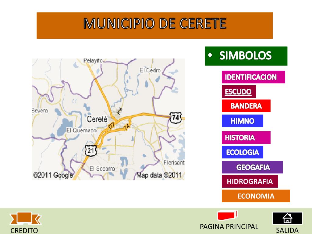 MUNICIPIO DE CERETE • SIMBOLOS IDENTIFICACION ESCUDO BANDERA HIMNO HISTORIA ECOLOGIA GEOGAFIA HIDROGRAFIA ECONOMIA PAGINA PRINCIPAL SALIDA CREDITO