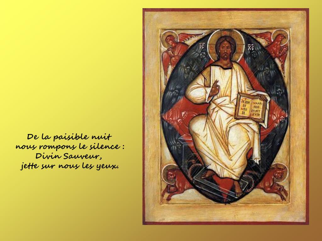 De la paisible nuit nous rompons le silence : Divin Sauveur, jette sur nous les yeux.