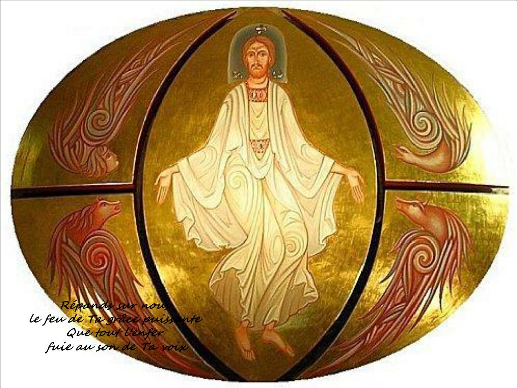 Répands sur nous le feu de Ta grâce puissante Que tout l'enfer fuie au son de Ta voix