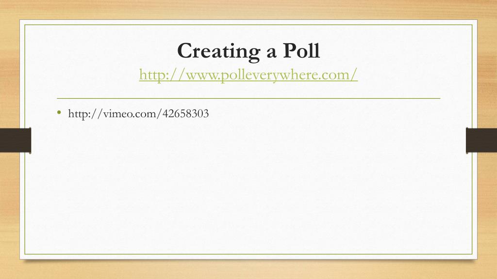 Creating a Poll http://www.polleverywhere.com/ • http://vimeo.com/42658303