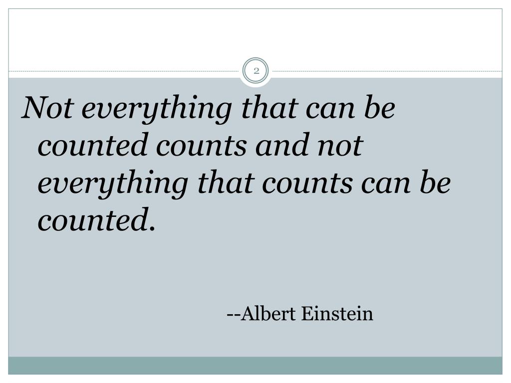Not everything that can be counted counts and not everything that counts can be counted. --Albert Einstein