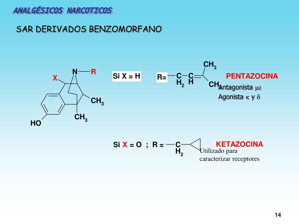 ANALGÉSICOS NARCOTICOS SAR DERIVADOS BENZOMORFANO Antagonista 2 Agonista y Utilizado para caracterizar receptores