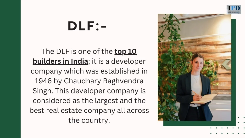 The DLF is one of the top 10 builders in India; it is a developer company which was established in 1946 by Chaudhary Raghvendra Singh.