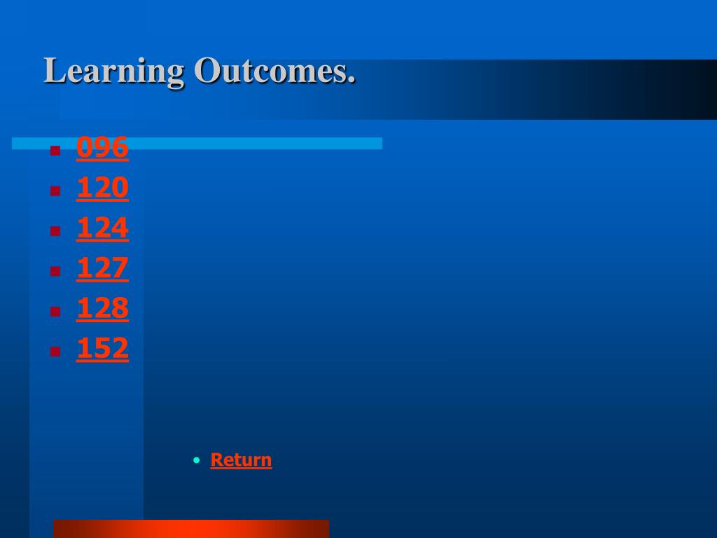 Learning Outcomes. • 096 • 120 • 124 • 127 • 128 • 152 • Return