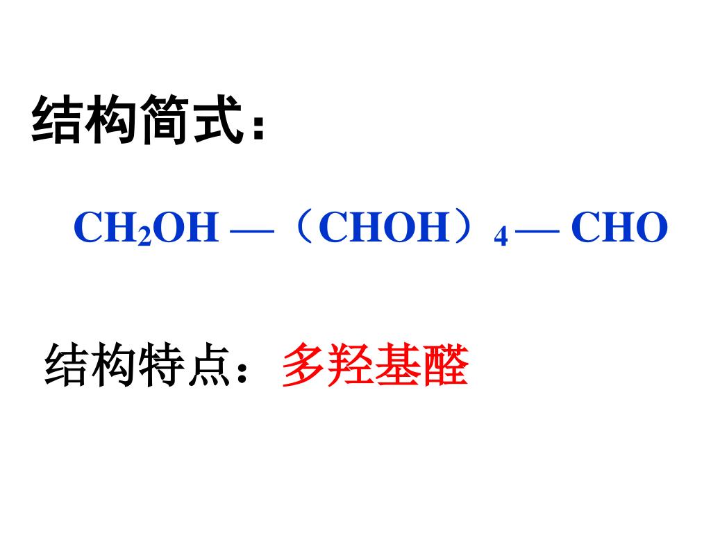 结构简式: CH2OH —(CHOH)4 — CHO 结构特点: 多羟基醛
