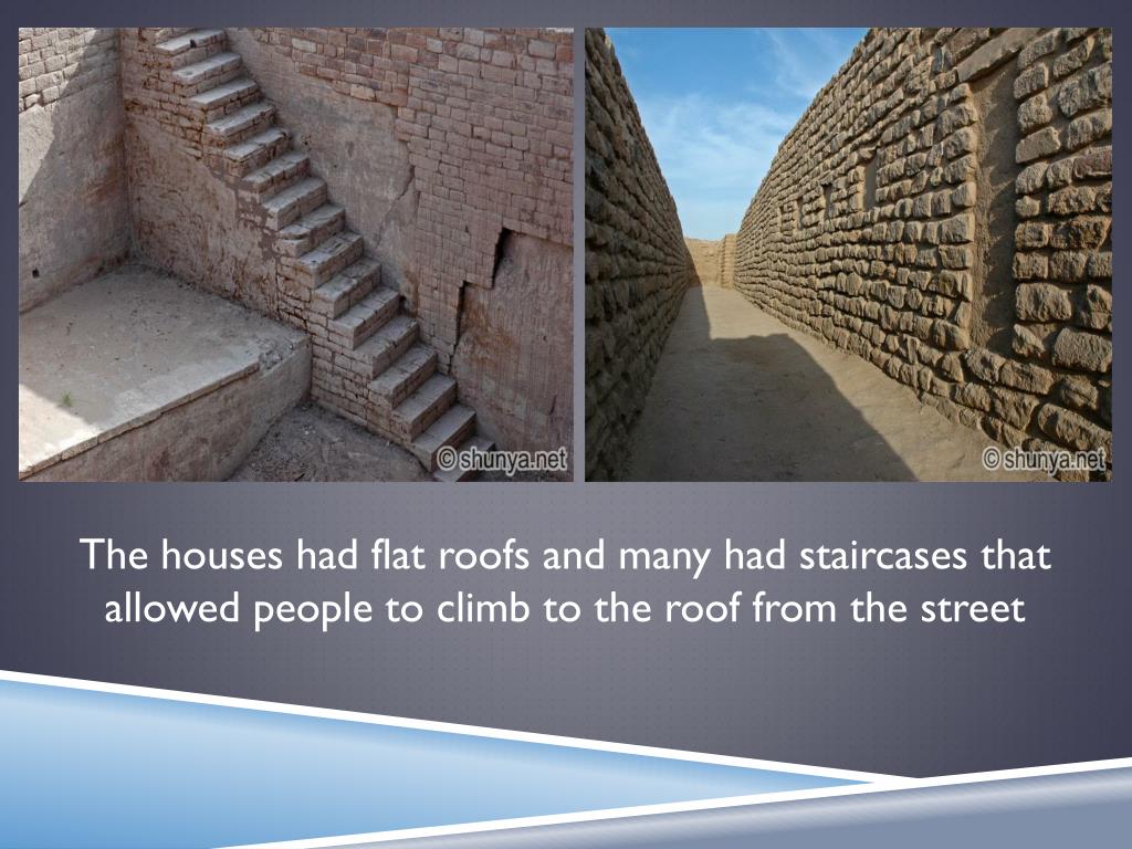 The houses had flat roofs and many had staircases that allowed people to climb to the roof from the street