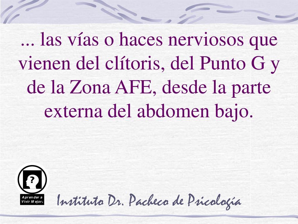 ... las vías o haces nerviosos que vienen del clítoris, del Punto G y de la Zona AFE, desde la parte externa del abdomen bajo. Instituto Dr. Pacheco de Psicología