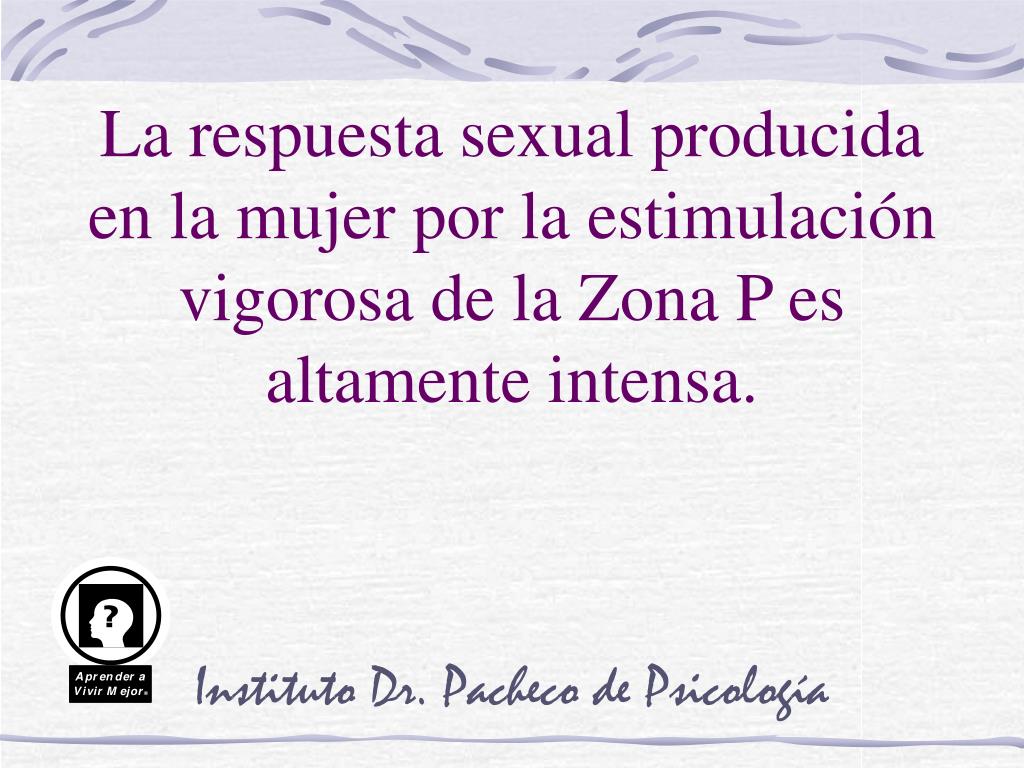 La respuesta sexual producida en la mujer por la estimulación vigorosa de la Zona P es altamente intensa. Instituto Dr. Pacheco de Psicología