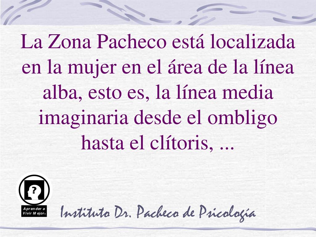 La Zona Pacheco está localizada en la mujer en el área de la línea alba, esto es, la línea media imaginaria desde el ombligo hasta el clítoris, ... Instituto Dr. Pacheco de Psicología