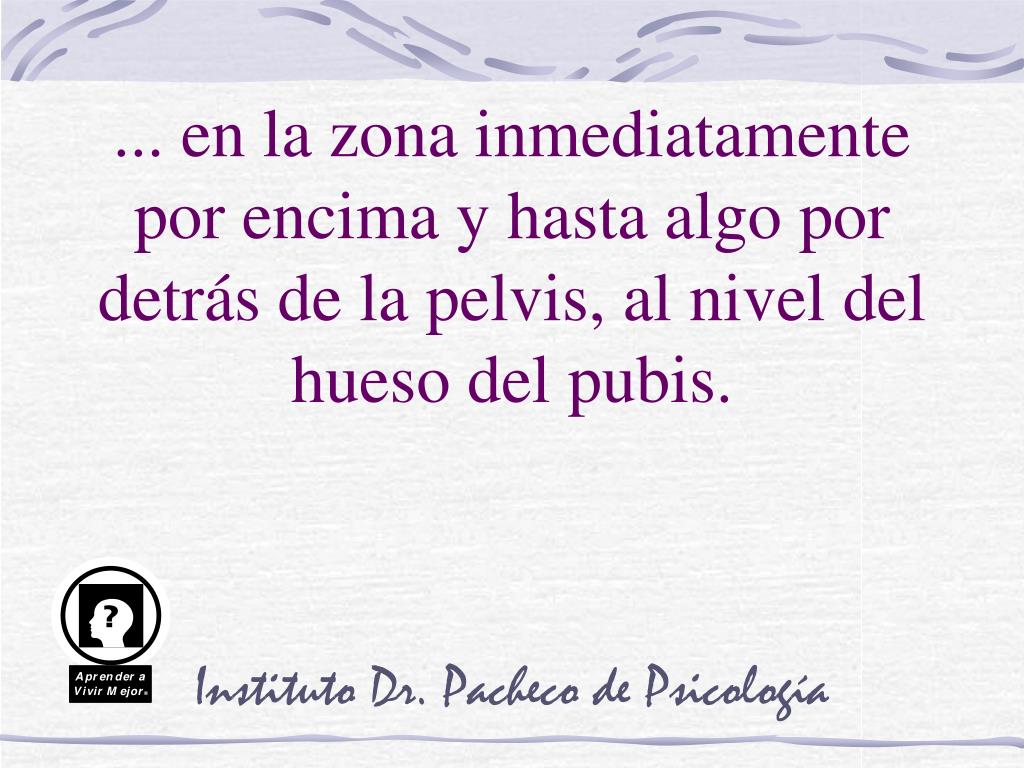 ... en la zona inmediatamente por encima y hasta algo por detrás de la pelvis, al nivel del hueso del pubis. Instituto Dr. Pacheco de Psicología