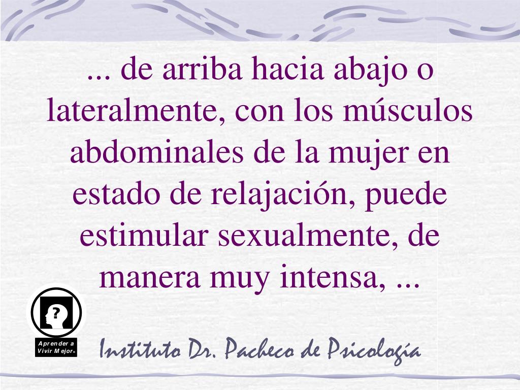 ... de arriba hacia abajo o lateralmente, con los músculos abdominales de la mujer en estado de relajación, puede estimular sexualmente, de manera muy intensa, ... Instituto Dr. Pacheco de Psicología