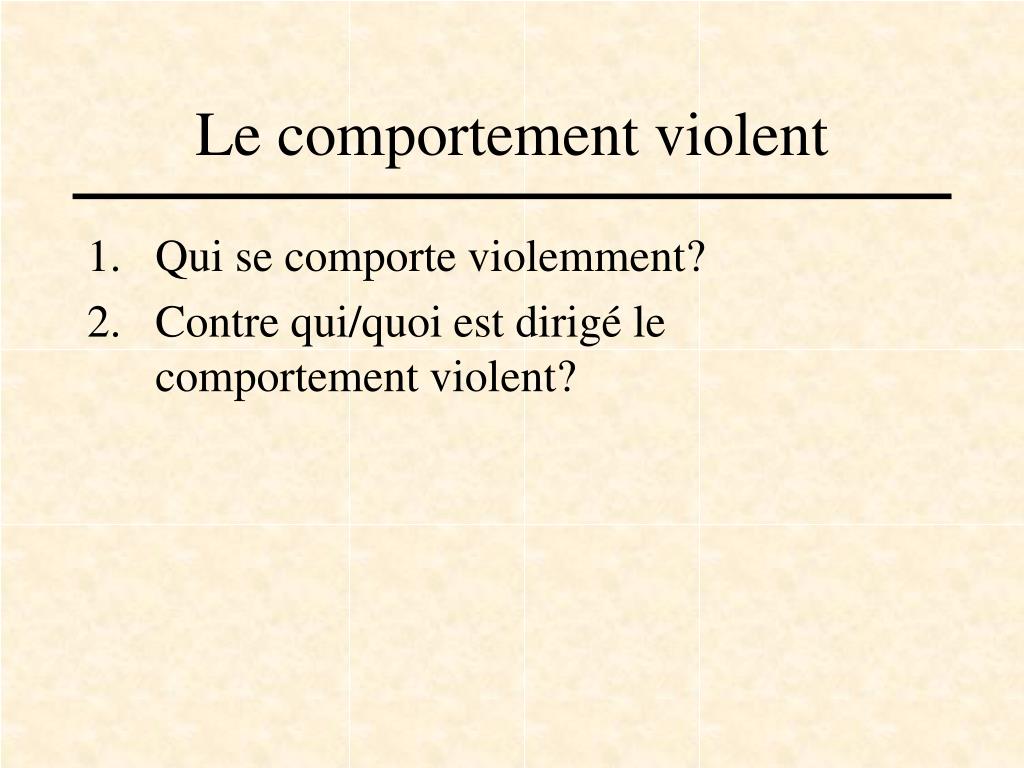Le comportement violent • Qui se comporte violemment? • Contre qui/quoi est dirigé le comportement violent?