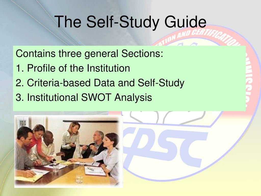 The Self-Study Guide Contains three general Sections: 1. Profile of the Institution 2. Criteria-based Data and Self-Study 3. Institutional SWOT Analysis