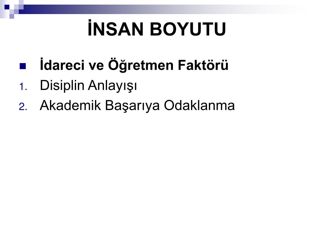 İNSAN BOYUTU • İdareci ve Öğretmen Faktörü • Disiplin Anlayışı • Akademik Başarıya Odaklanma